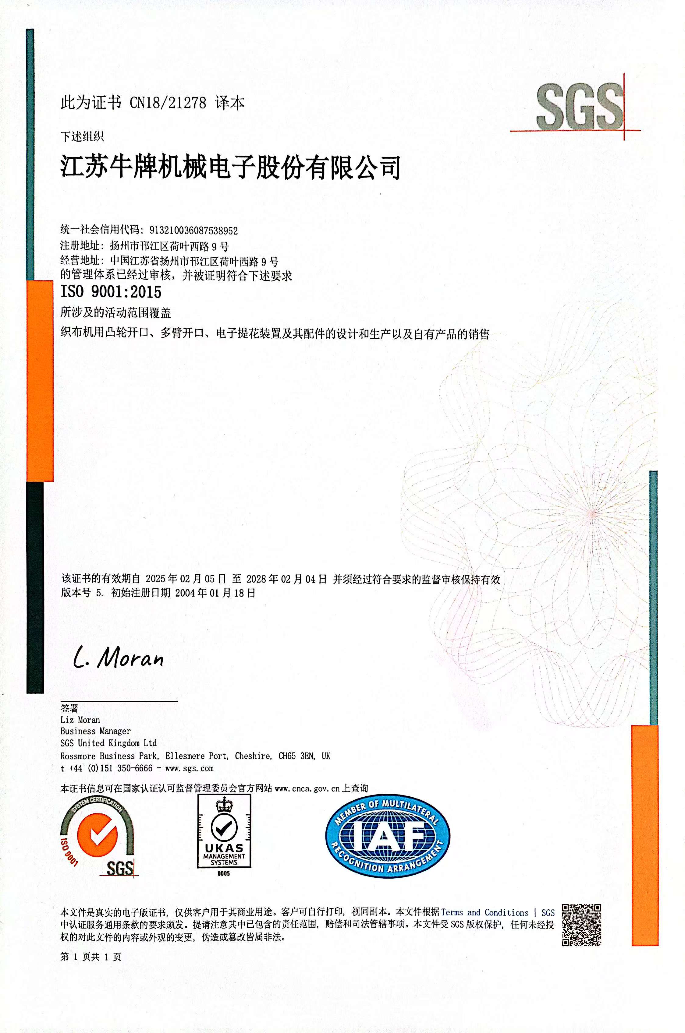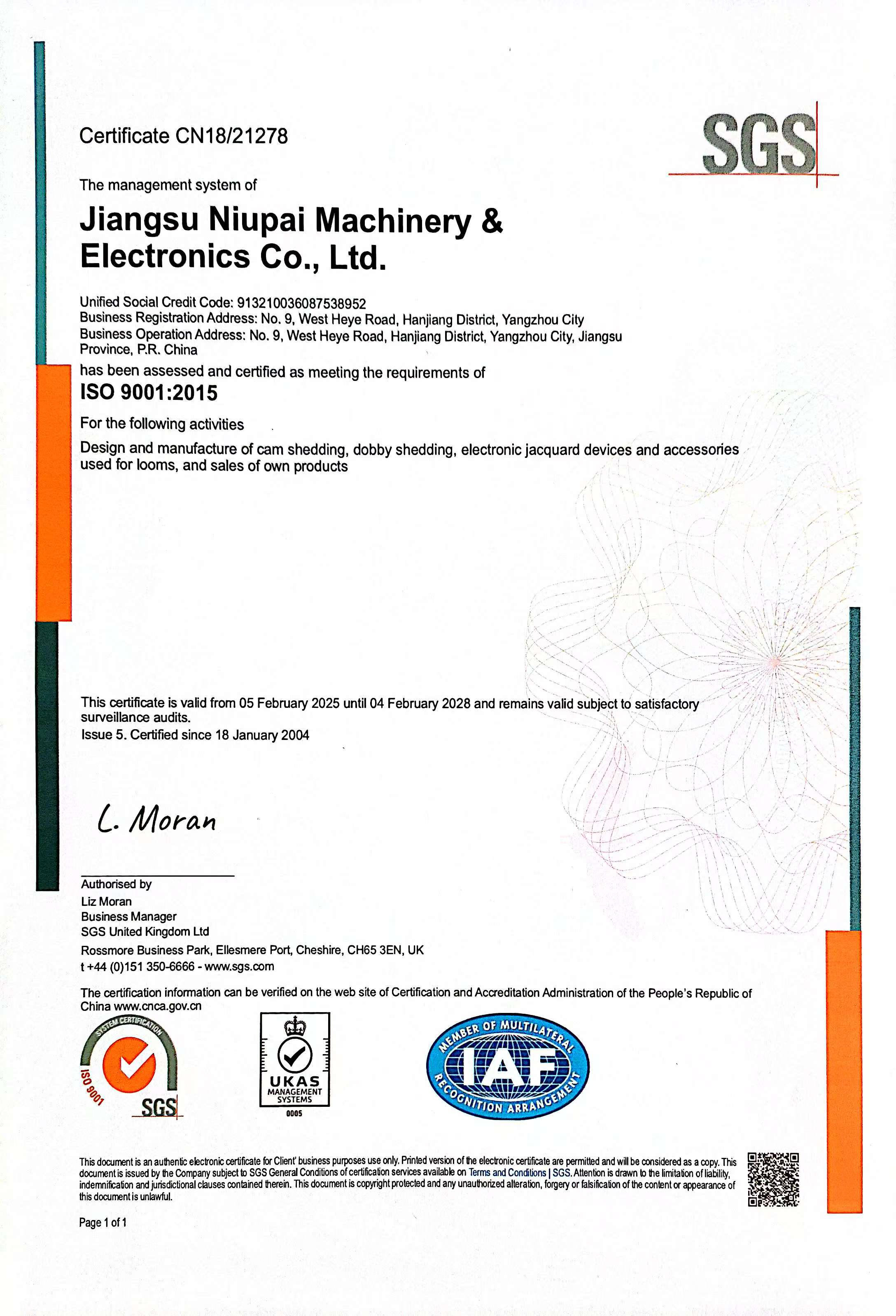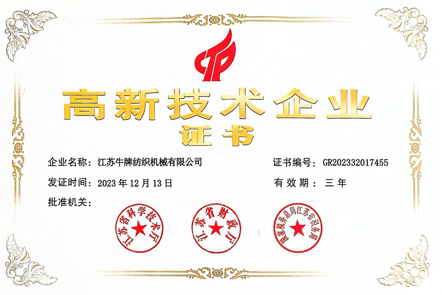 国家级专精特新“小巨人”企业、国家级高新技术企业、江苏省织机开口工程技术研究中心、江苏省企业技术中心,通 过国际公认的瑞士通用公证行(SGS) 认证的质量管理体系。